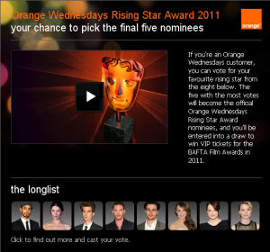 Robert Pattinson didn�t get on voting list 8 nominees for Orange Wednesday�s Rising star award 2011 BAFTA UK, Nov.25